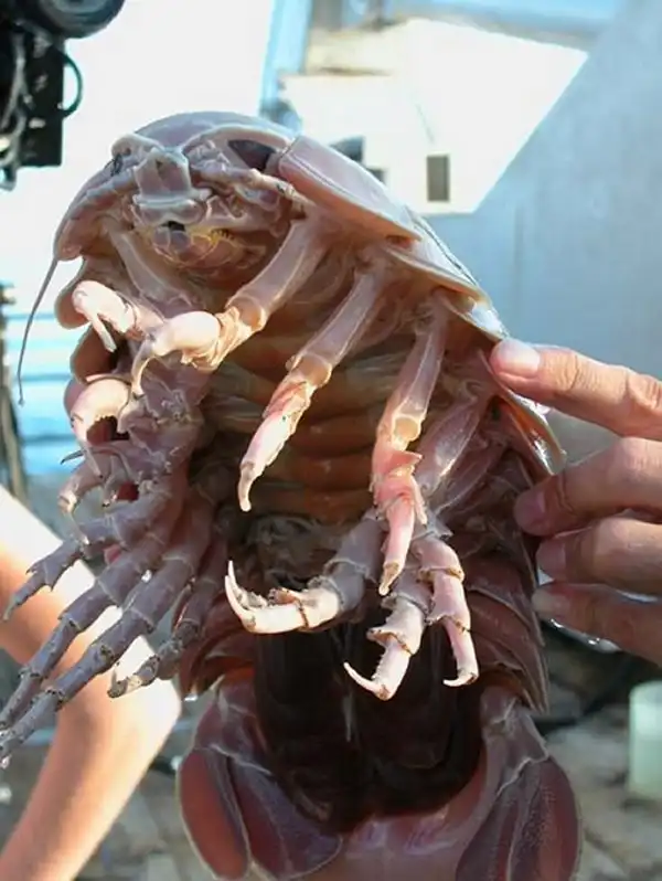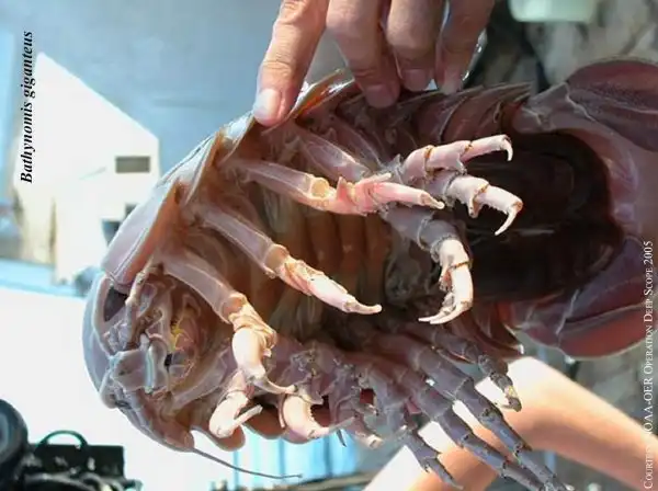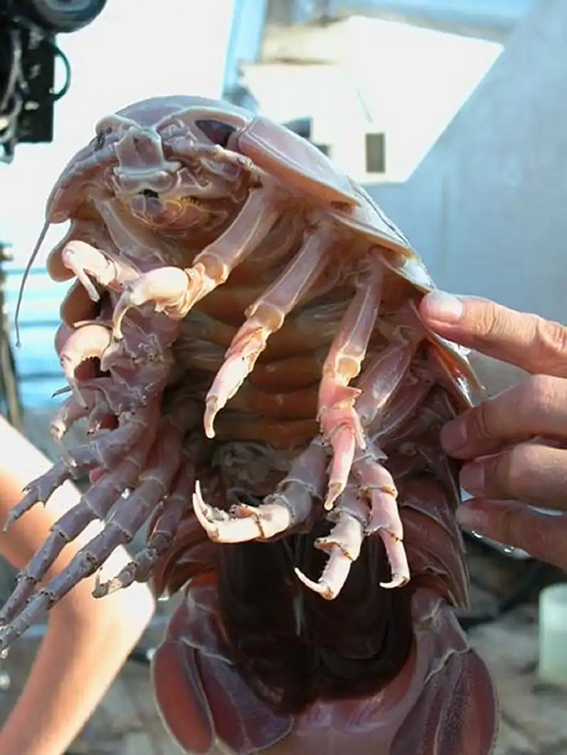Изопод, присосавшийся к аппаратуре, оказался рекордсменом для своего вида. Если обычно Bathynomus Giganteus достигают в длину 60 см, то особь, напугавшая нефтяников, отъелась до 75 см. Эти животные -- прожорливые хищники, пожирающие падающие на дно туши китов, кальмаров, рыб.