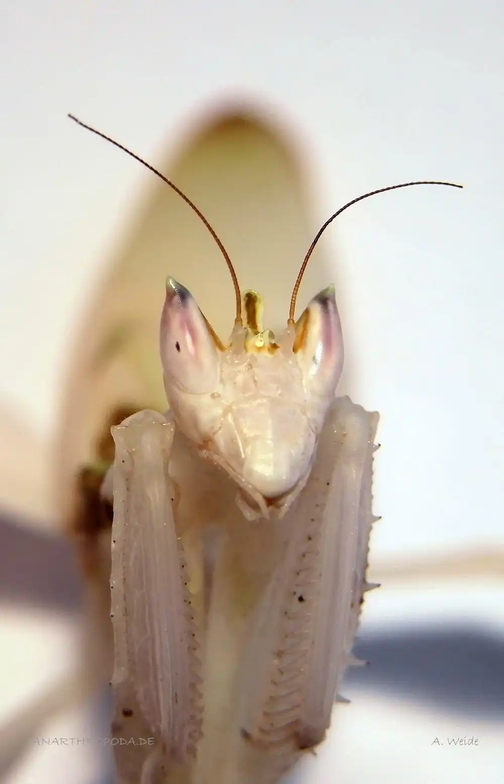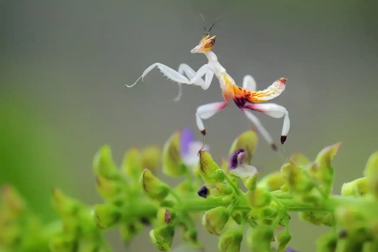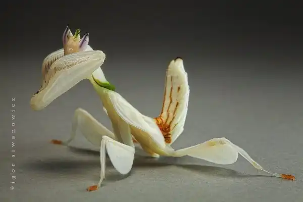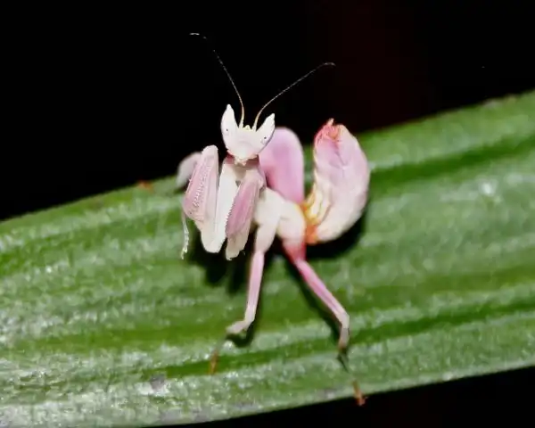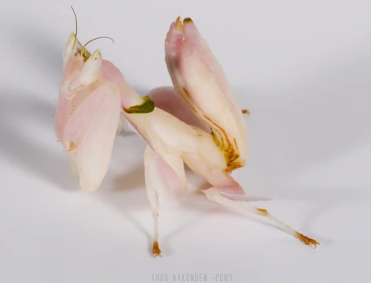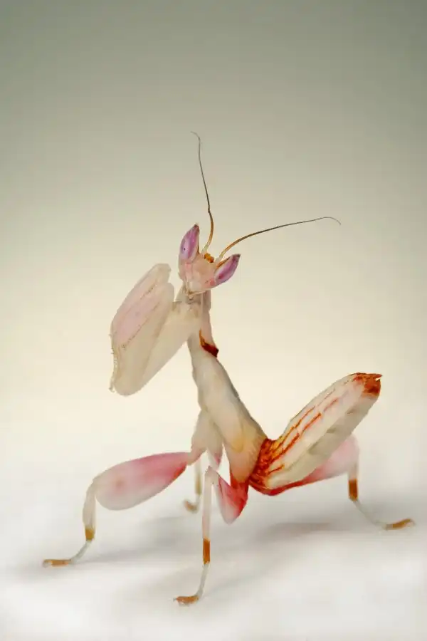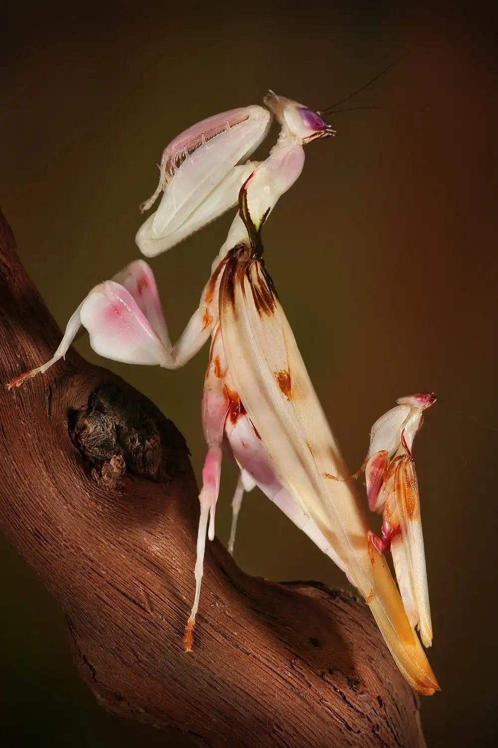 Орхидейный богомол (лат. Hymenopus coronatus). Малазийский цветковый, или орхидейный богомол — очень редкое насекомое! Окрас этих богомолов бывает разнообразных окрасов: от розового до желтого к белому. Это позволяет богомолу в природе прятаться в цветах орхидей.