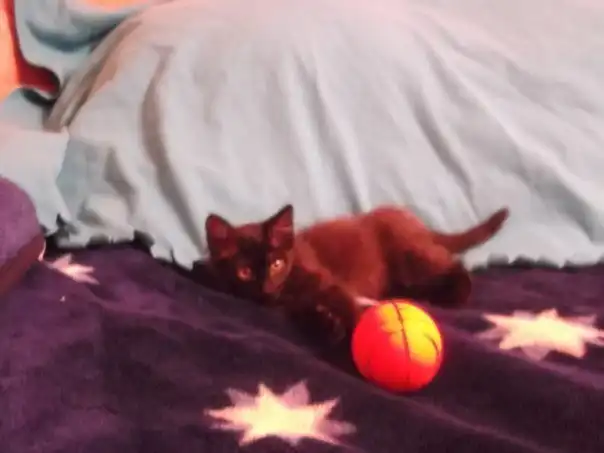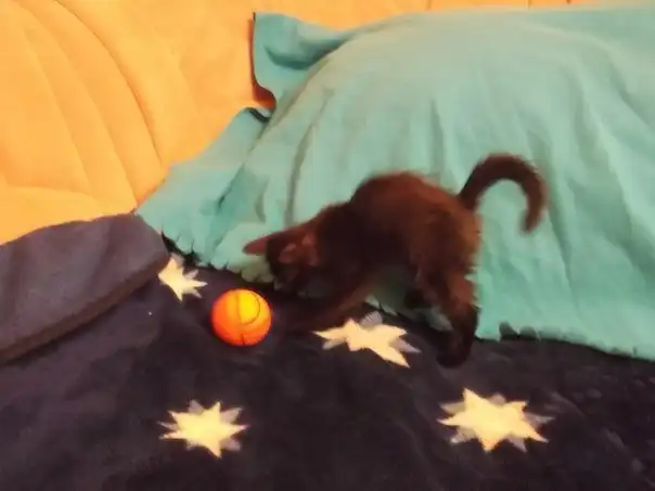 Черная с легкой проседью, без белых пятен, пушистая девочка. Очень игривая (настоящая егоза), безумно мурлычащая и любящая любое общество (даже спит с игрушкой). Пока еще слегка пугливая. Очень и очень не любит фотографироваться... В лоточек пошла сразу. Блохи, глисты протравлены. Отдается при условии обязательной стерилизации по достижении соответствующего возраста (предоставляется льгота).