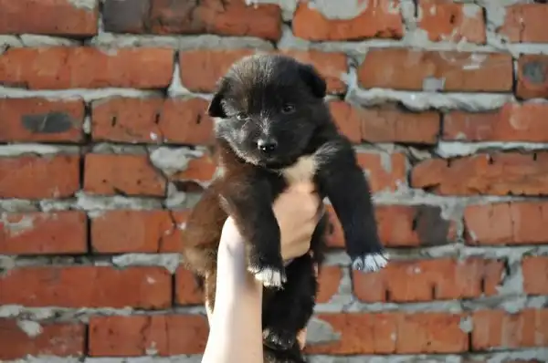 Ребятишки нашли в лесу щенков, принесли и спрятали их во дворе. Рано утром жильцы услышали писк, теперь мы их кормим. Возраст примерно - 1 месяц, кушают самостоятельно, упитаны, здоровы. Щенки вырастут средними, а возможно и крупными.