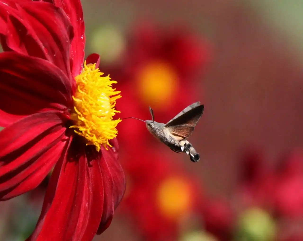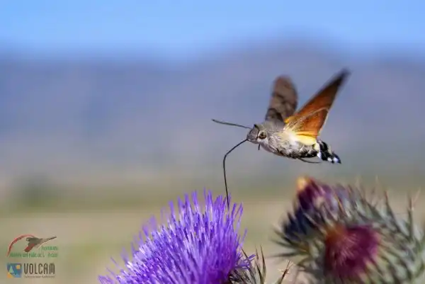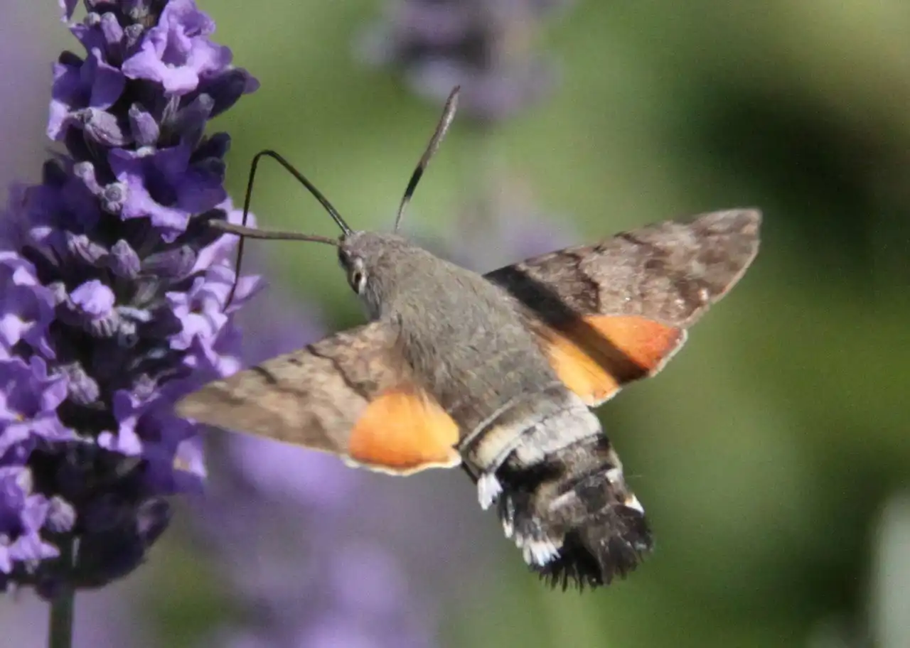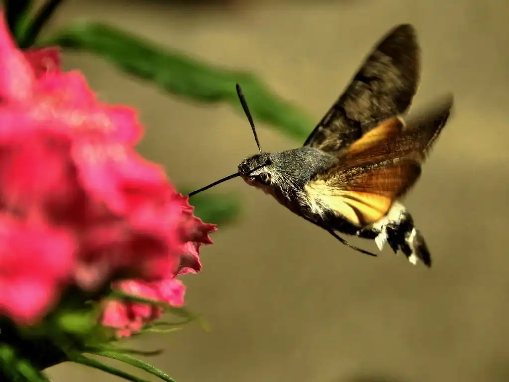 Над цветком завис языкан обыкновенный или бражник-хоботник (Macroglossum stellatarum) — крупный бражник, действительно видом напоминающий колибри. Именно этот вид чаще всего принимают за маленькую птичку, поскольку он летает в дневное время.