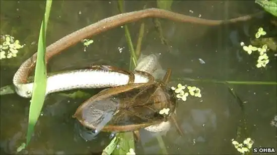 Изучая гигантских водяных клопов в их естественной среде обитания — на рисовых полях, ученый обнаружил, как насекомое поедало китайскую трёхкилевую черепаху. Отметим, что черепашки данного вида в среднем вырастают до 17 см.