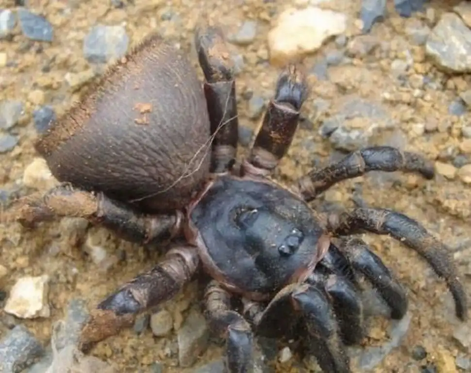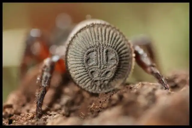 Свой диск паук использует в качестве одного из способов защиты в случаях опасности. Они ведут малоподвижный образ жизни, поэтому от своих норок далеко не отходят. Во время угрозы он уползает в свою норку головой вперед и своим твердым диском закрывает вход в убежище.