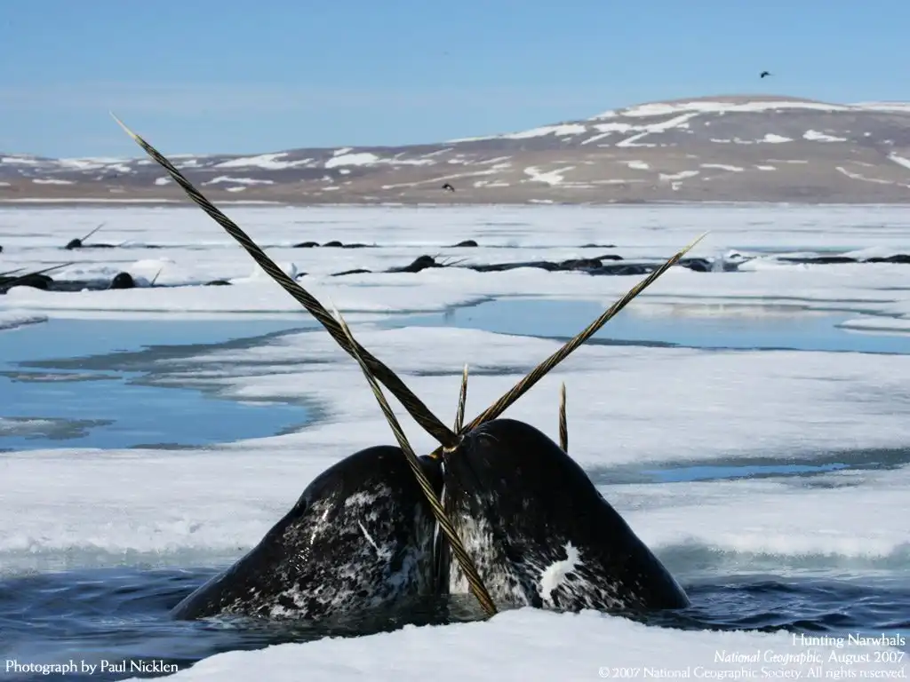В отряде китообразных существует огромное количество различных видов млекопитающих. Наиболее примечательными среди них являются нарвалы. Обязаны они такой популярностью своему длинному рогу или бивню, который торчит прямо изо рта и достигает в длину 3 метра. Бивень этот состоит из костной ткани, но наравне с твёрдостью чрезвычайно гибок. В действительности он является ничем иным как одним из двух верхних зубов, проткнувшим верхнюю губу и вылезшим наружу. Весит такой бивень 10 кг.
