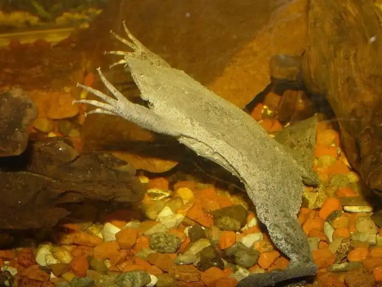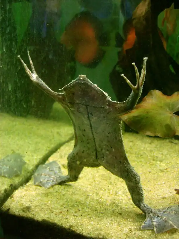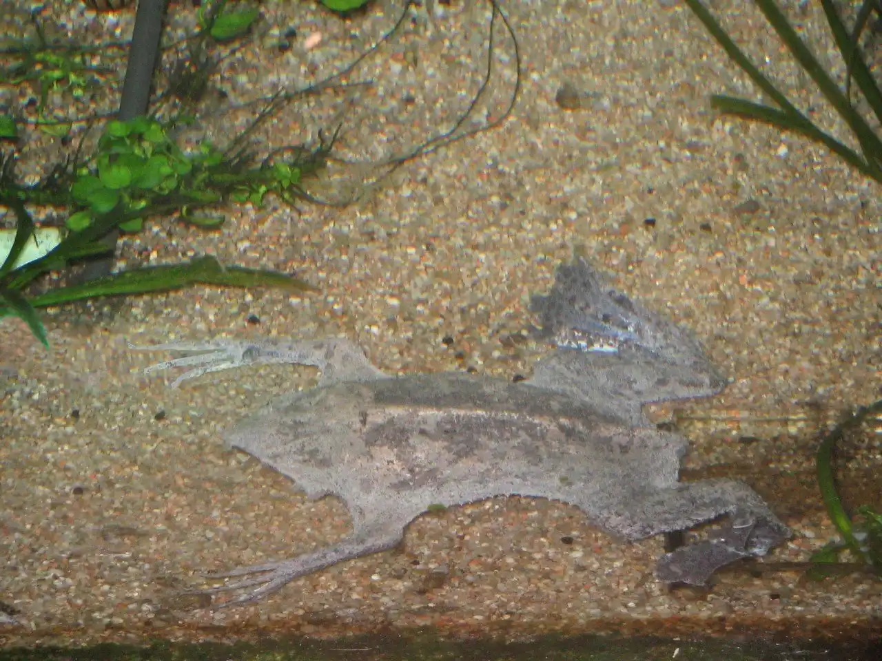 Если есть желание завести это чудо природы у себя в квартире, придется приобрести просторный аквариум на 100, а лучше на 200 или 300 литров, декорировать его живыми или искусственными растениями и насыпать на дно мелкий гравий. Вода в нем должна быть теплой (около 26 градусов) и хорошо аэрированной. Кормить суринамских пип можно мотылем, дождевыми червями и мелкими рыбками.