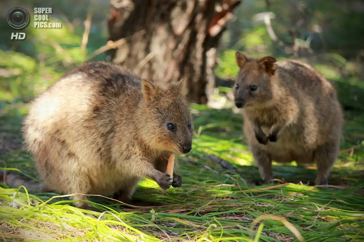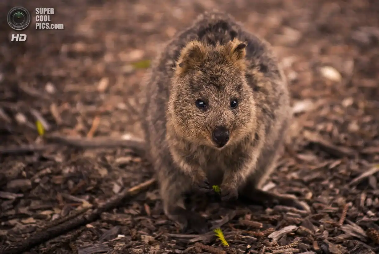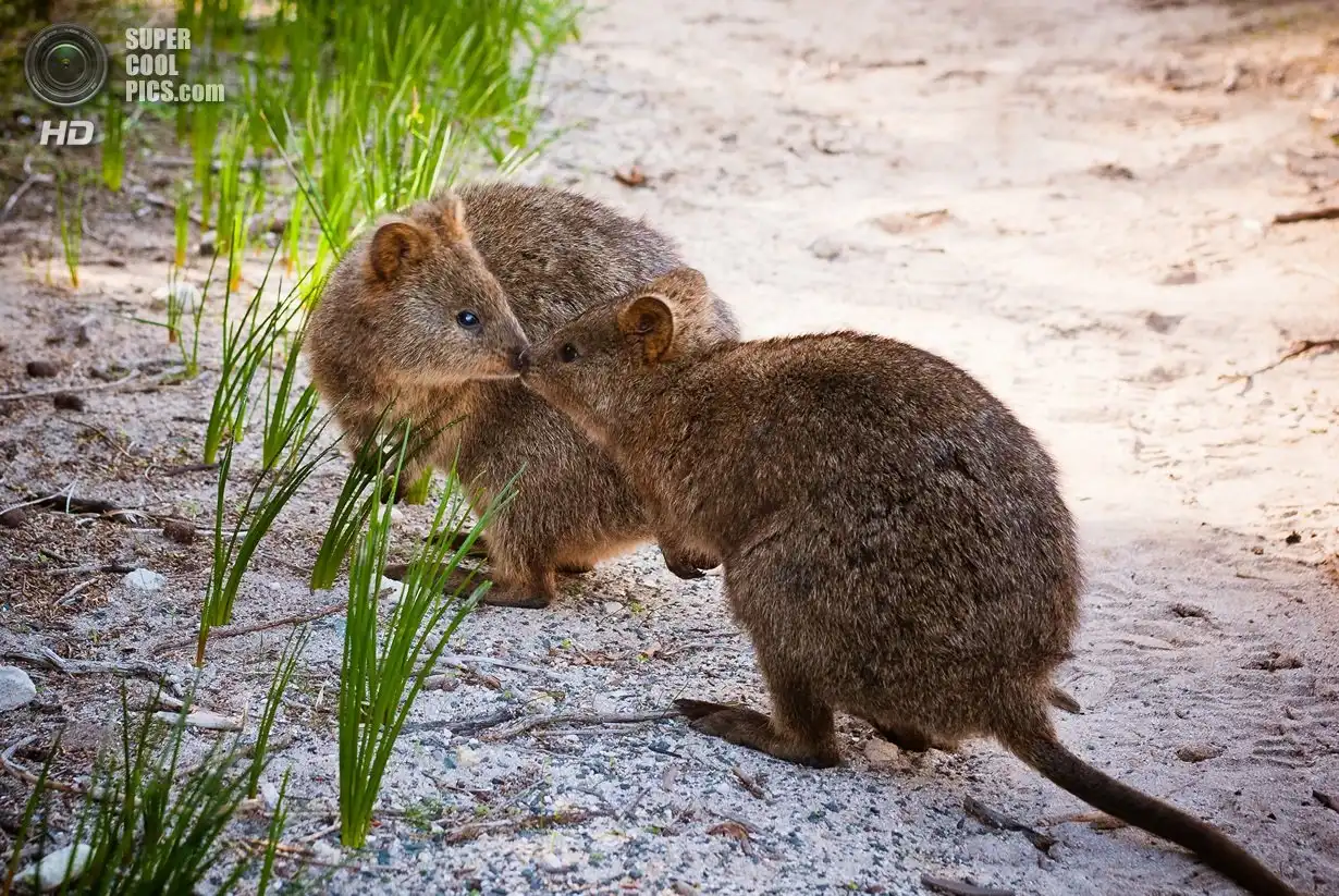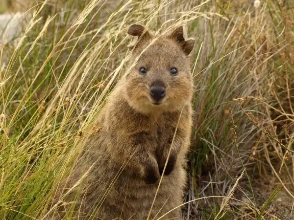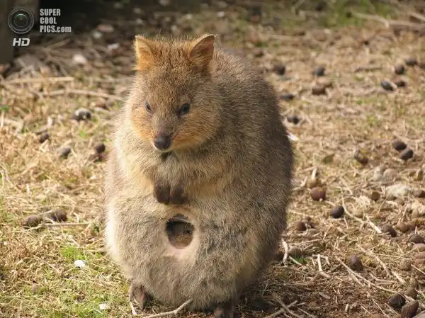 Квокка или короткохвостый кенгуру (лат. Setonix brachyurus) очень похож на крупного грызуна с маленькими передними лапками. Длина его тела редко превышает полметра, а вес всего 2-5 кг. По размерам его можно сравнить с большой породистой кошкой или средней собакой. Правда, в отличие от этих прирученных домашних хищников, квокка травоядна.