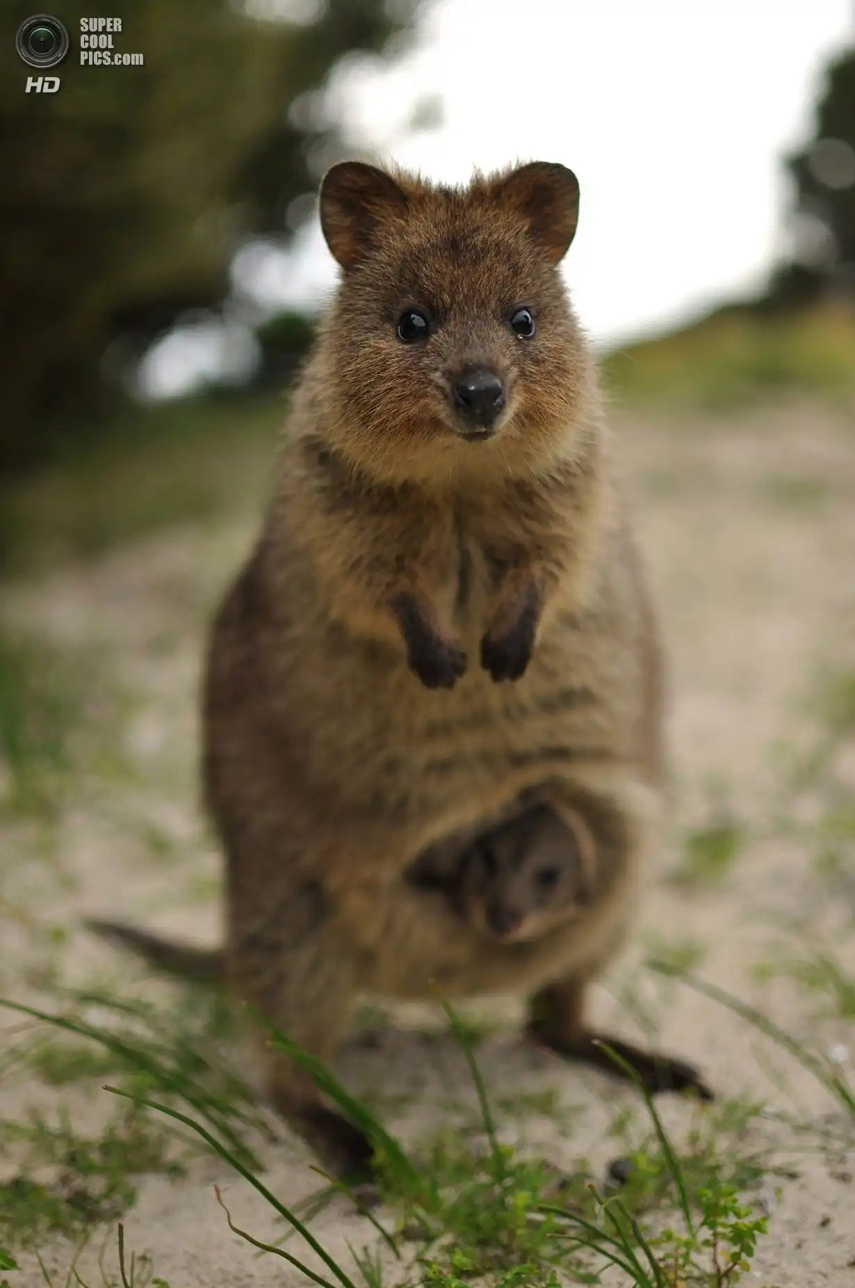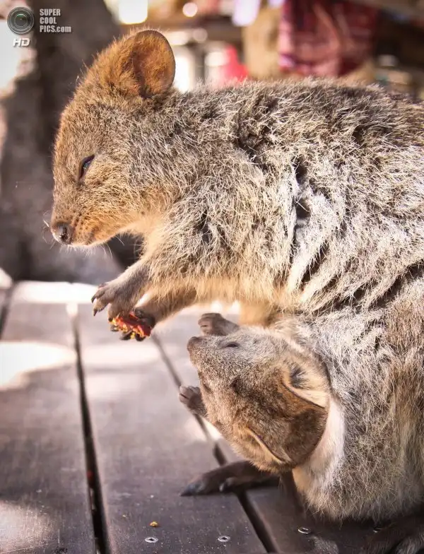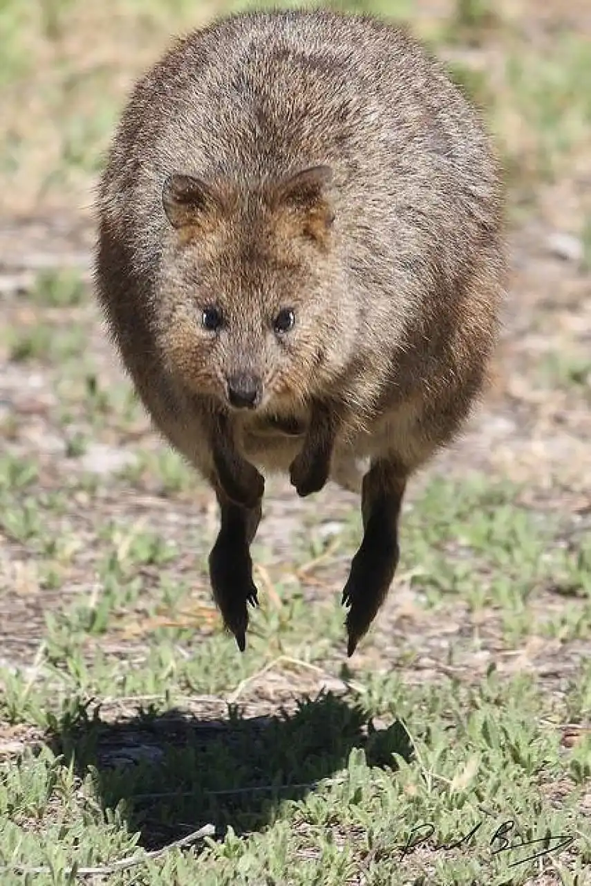 Квокка или короткохвостый кенгуру (лат. Setonix brachyurus) очень похож на крупного грызуна с маленькими передними лапками. Длина его тела редко превышает полметра, а вес всего 2-5 кг. По размерам его можно сравнить с большой породистой кошкой или средней собакой. Правда, в отличие от этих прирученных домашних хищников, квокка травоядна.