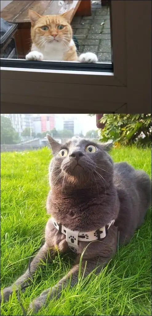 Эмоции домашних котов, впервые попавших на улицу.
