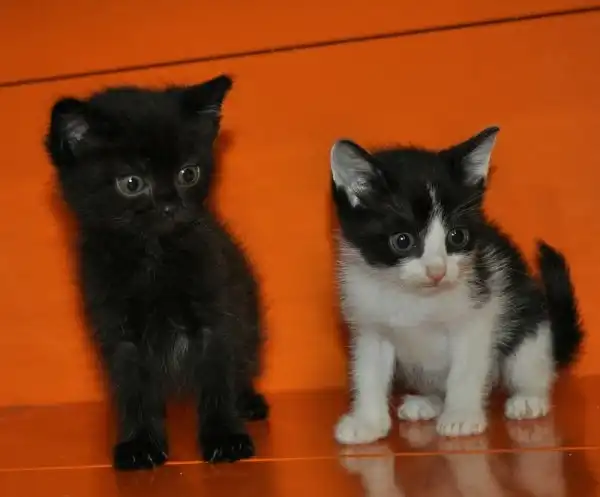 Два котенка ищут своих хозяев. Мальчики, возраст 1,5 мес. Найдены на улице еще слепыми вместе с кошкой-мамой. Окрас одного котенка черный, второй черно-белый. Веселые, неунывающие ребята, очень подвижные и игривые, очень любят внимание к себе. Питаются влажным и сухим кормом для котят. Лоток освоили идеально. Имеют сертификаты на льготы при кастрации.