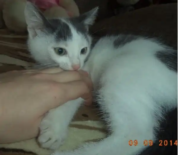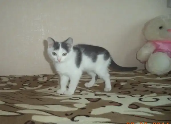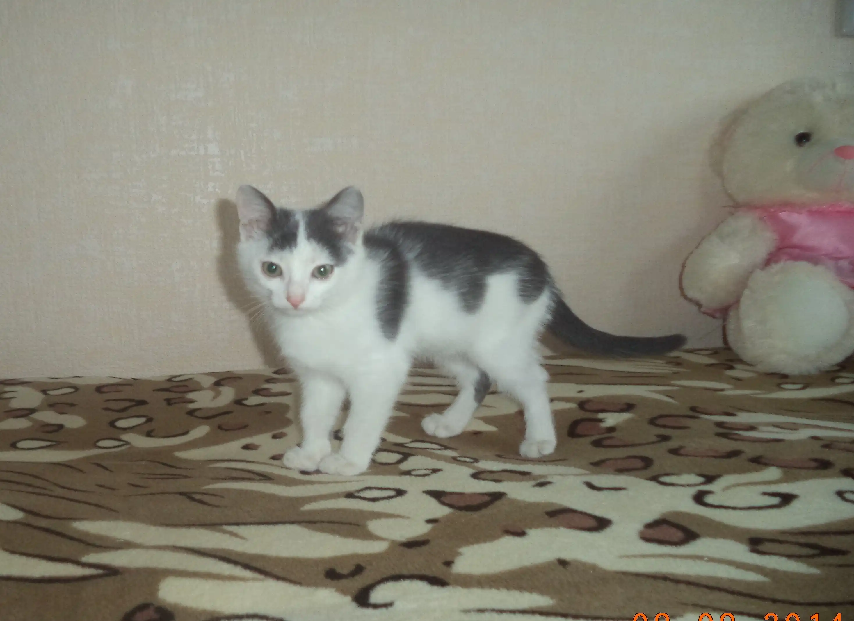 Отдадим котенка в хорошие руки:) Котенку где-то 2 месяца,уже приучен к лотку.Подобран на улице,был у ветеринара,блох нет.Игривый,шерсть мягкая (фотки криво отредактированы,по этому может показаться что он как ежик:) ) Не можем держать,дома маленький ребенок. Клички еще нету:)
