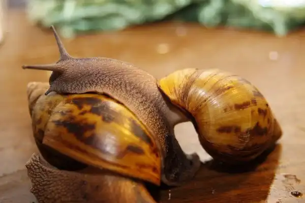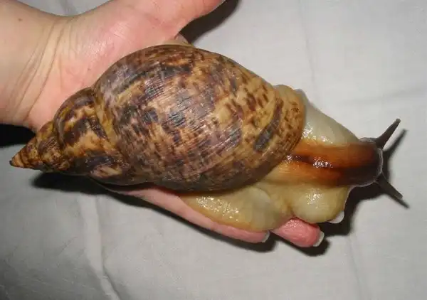 Раковина ахатины может достигать в длину до 25 см, а тело — до 30 см. Размеры улитки напрямую зависят от условий содержания — в благоприятном тропическом климате растут «монстры» весом под 300-400 грамм. Размеры улитки зависят от того, участвует ли она в размножении, поэтому, если вы захотите вырастить гиганта — надо будет озаботиться не только поддержанием надлежащего климата и покупкой большого террариума, но и тем, что растить её нужно будет в одиночестве — активно размножающиеся улитки не вырастают до больших размеров.