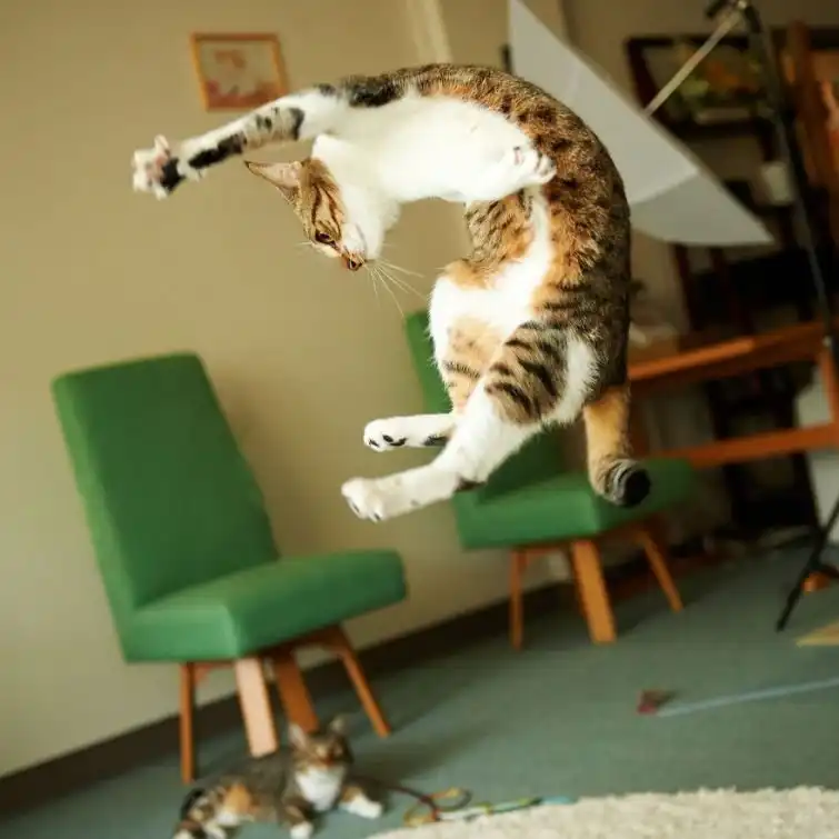 Кошки являются символом уравновешенности и гармоничности, а также эти животные имеют превосходный баланс и всегда приземляются на лапы. Даже когда они в воздухе, как эти летающие во время прыжка ниндзя-коты, они сохраняют изящество и грацию.