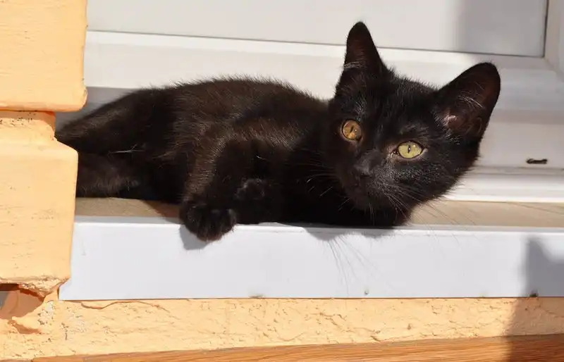 Котенок темно-шоколадного цвета, только на пузике небольшое белое пятнышко. Возраст примерно 3 месяца.