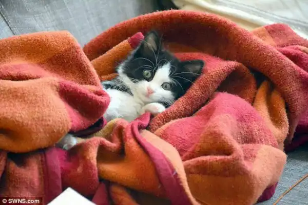 Babybell, черно- белый бездомный котенок по имени популярного сыра.