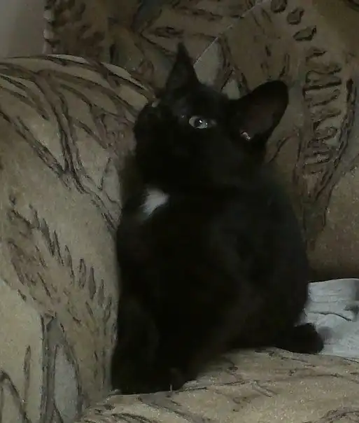 Ищет дом и заботливого любящего хозяина котенок, черный с белой грудкой, у основания хвоста - милое колечко из седых волос, мордочка очень милая, глаза насыщенно зеленого цвета. Возраст 2 месяца, мальчик. Здоров, привит. Очень активный и игривый, никогда не сидит на месте, даже если уже хочет спать - засыпает на ходу. Очень ласковый, когда выпускаю его из коробки, первым делом ластится к ногам, а потом уже идет кушать к миске. Мурлычет очень громко и мелодично. Котенок полностью обучаемый, к лотку приучен (в квартире когда бегает не пакостит, просится в коробку чтобы сходить в поставленный там лоток). Кушает "Whiskas для котят". Очень сильно нуждается в присутствии рядом людей, когда возвращаюсь домой с учебы, плачет уже охрипшим голосом из коробки. На руках сидит не все время, если рядом есть человек, может часами играть с бумажками, игрушками и т д, не проявляя беспокойство, но не переносит одиночества совсем.