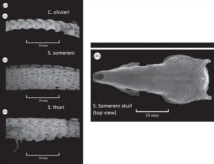 Стэнли отметил, что скелет Тора, как его команда стала называть животное между собой, имеет всего восемь позвонков в нижней части спины, а костные выступы на них имеют меньшие размеры, чем у угандской белозубки-броненоски.