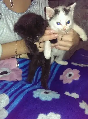В одном из подвалов Северска найдены три которебенка, возраст примерно 2,5 недели. Сейчас временно на передержке у меня, но малышам нужны ручки, мое кошкостадо их не воспринимает, черно-белый мальчик, пока зовем Лаки, он громче всех кричал в подвале и таким образом спас себя и братьев, черныши Винтик и Шпунтик, Винтик и Лаки шилопопые, Шпутник тихий которебенок. Пол чернышей пока сказать не могу, маленькие еще.