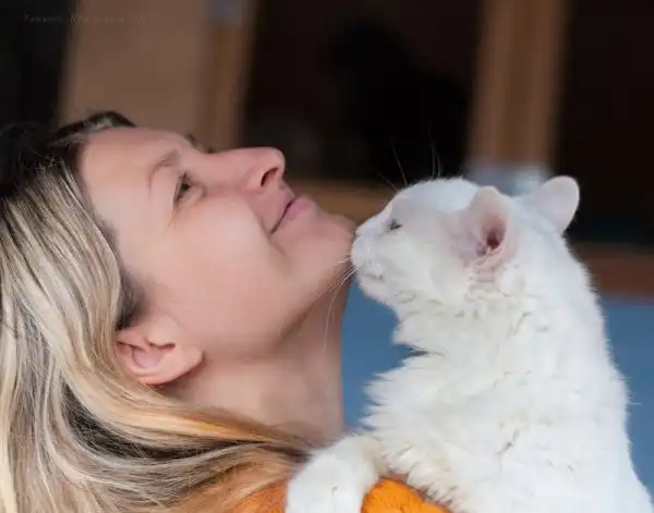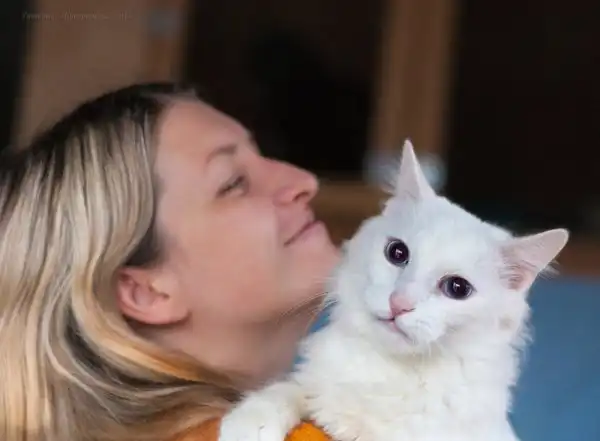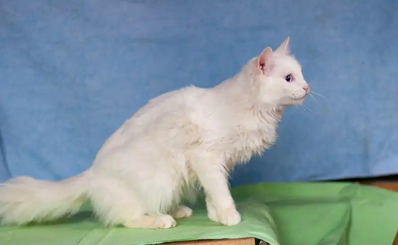 Иней - белоснежный пушистый голубоглазый мачо, похож на породистого ангорского кота (тело средней пушистости и очень пушистый хвост). Возраст примерно 1 год. От него отказались хозяева в связи с рождением ребенка. Кот очень ласковый, любит внимание к себе, обожает людей. Хорошо уживается с другими кошачьими. Питается готовыми кормами, лоток знает прекрасно. Кастрирован.