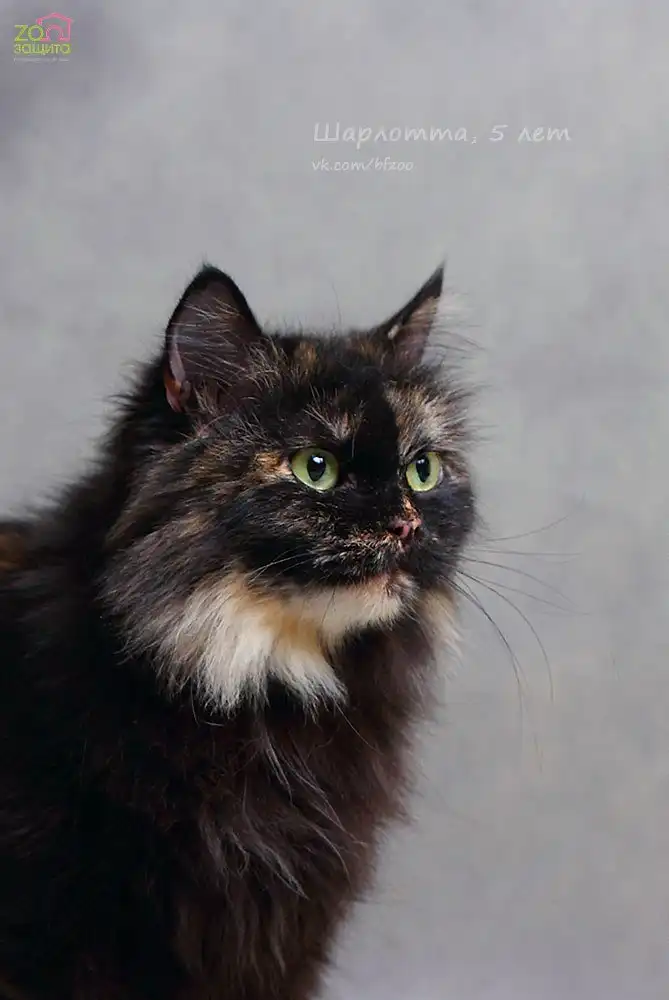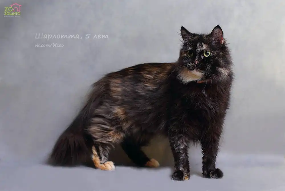 По неизвестным нам причинам эта красота однажды оказалась на улице. Шарлотта очень красивая кошка, она с первой встречи завоюет ваше сердце. Шарлотта мега ласковая кошка. Она будет находится постоянно рядом с вами, будет залазить на ручки при каждом удобном и не удобном случае, будет постоянно мурчать, заглядывать в глаза и настойчиво "целовать" вас в нос. Шарлотта будет провожать вас на работу/учебу и неизменно встречать по возвращению у порога, жалуясь, как без вас было одиноко и радуясь, что теперь вы снова вместе. Спать она, конечно, будет тоже с вами. Она будет делать с вами все! Она станет неотъемлемой частью вашей жизни на долгие годы. Пожалуйста, оцените всю ответственность прежде, чем звонить. Шарлотте примерно 5 лет. Она обработана от паразитов, вакцинирована, стерилизована. Кушает проф.корм, приучена к лотку с древесным наполнителем. Отдается по договору. Будущему хозяину в подарок студийная фотосъемка с любимцем.