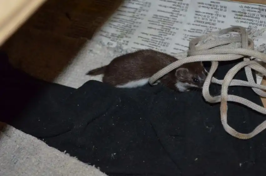 Один парень решил спасти мышку из зубов кошки, но, как оказалось, добычей оказалась не мышка, а щенок ласки.