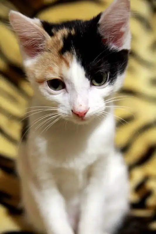 Котенок, девочка, черепахового окраса, возраст примерно 2 мес. Шустрый и веселый ребенок. Питается готовыми кормами, пользуется лотком. Имеет сертификат на скидку при стерилизации.