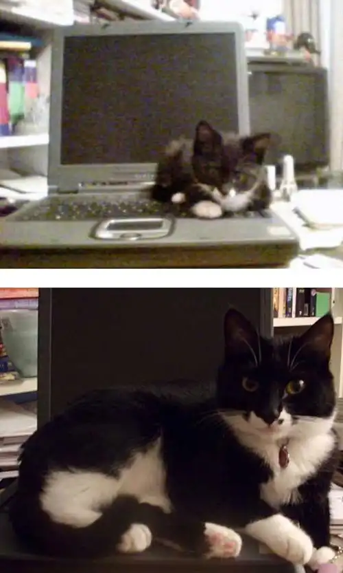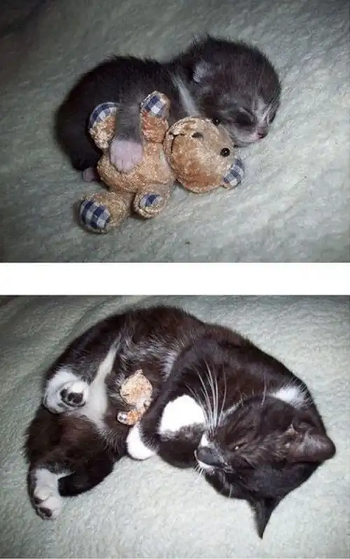 Вы берете котенка. Он такой миленький, пушистый, с глазками-бусинками, так очаровательно мяукает своим тоненьким голоском и играет с вашим плюшевым мишкой. Но потом они вырастают. И если не брать в расчет целый ворох новых (иногда вредных) привычек, которые вырабатывают в себе ваши питомцы, у них все же остается много привычек детства. В этом выпуске в стиле “тогда и сейчас” вы увидите котят и выросших из них котов и кошек.
