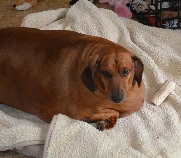 Такса по кличке Оби разжирела настолько, что для ее перемещения приходилось использовать специальную упряжку. Если быть точным, вес собачки достиг отметки в 35 килограмм (!!!). Песику светил статус самой жирной таксы на планете. Не очень-то почетно.