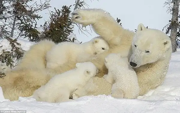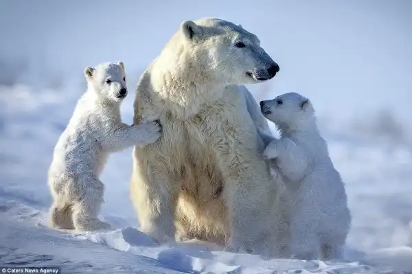 42-летний фотограф Дэвид Дженкинс 10 лет фотографирует белых медведей и медвежат в национальном парке Канады.