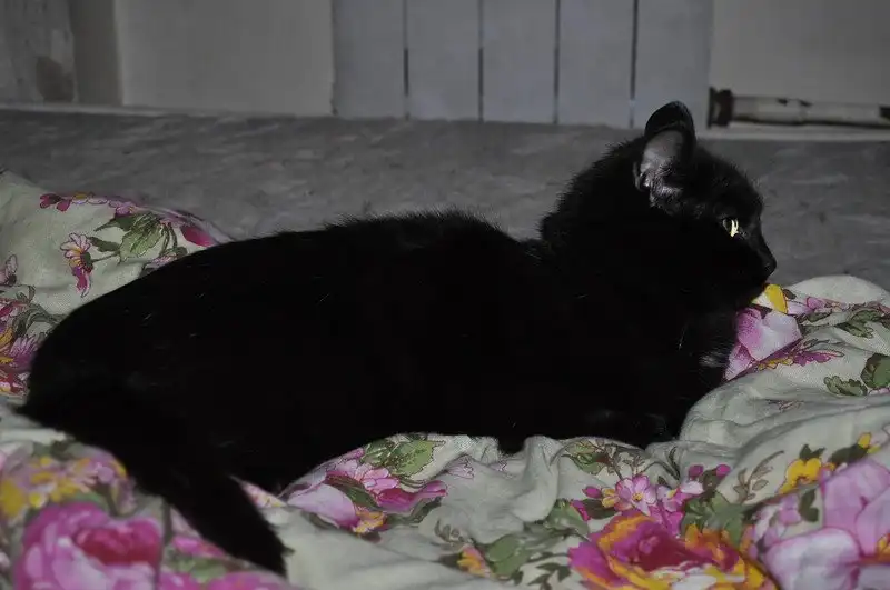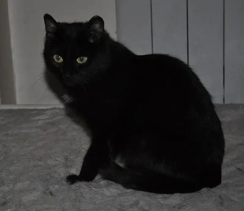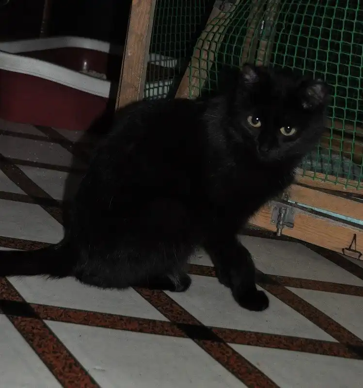 Молодая черная кошка. Самое мистическое и изящное существо из животного мира. Особенностью ее являются глаза – один желтого цвета, другой с зеленым оттенком. Эта брюнетка появляется и прячется быстро и незаметно. Она охраняет комнату, в которой живет, смело атакует наших собак и кошек, желающих попасть туда. Мы можем предположить, что она быстрый и удачный охотник. Зовут ее Мара-Маруся, это имя наилучшим образом передает ее характер: осторожная с незнакомыми, с хозяевами ласковая и сообразительная.