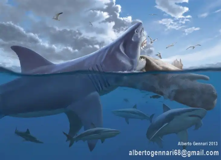 Но белая акула ничто по сравнению с гигантским хищником, который «правил» в 7-ми морях и господствовал над всеми животными в океане, начиная от эпохи олигоцена до плейстоцена. Мегалодоны были гигантскими ископаемыми акулами, жившими около 25 миллионов лет назад. Окончательно они вымерли около 2-х миллионов лет назад. Это были самые крупные акулы океана известные нам по палеонтологической летописи.