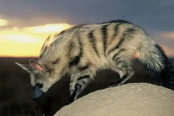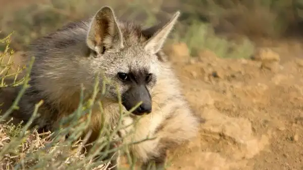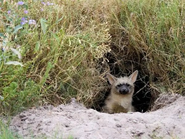 Голос: Когда земляной волк испуган или ему угрожает опасность, он ревет и издает рычание.