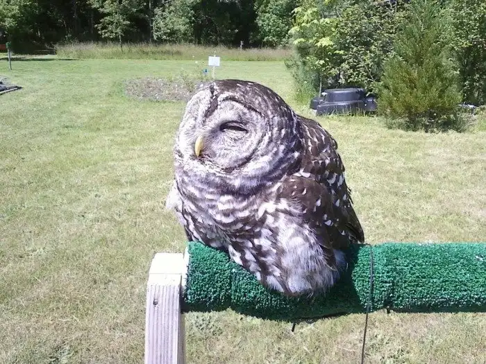 Все мы хорошо знаем, что совы являются ночными хищниками, а потому дневной свет действует на них далеко не самым лучшим образом. Вот, например, эта особь, похоже, начала «таять» под солнечными лучами.