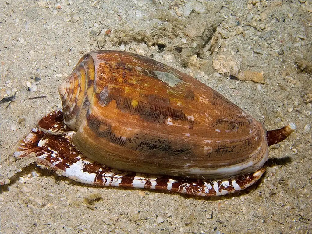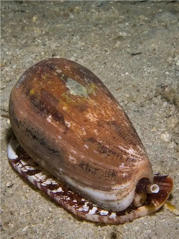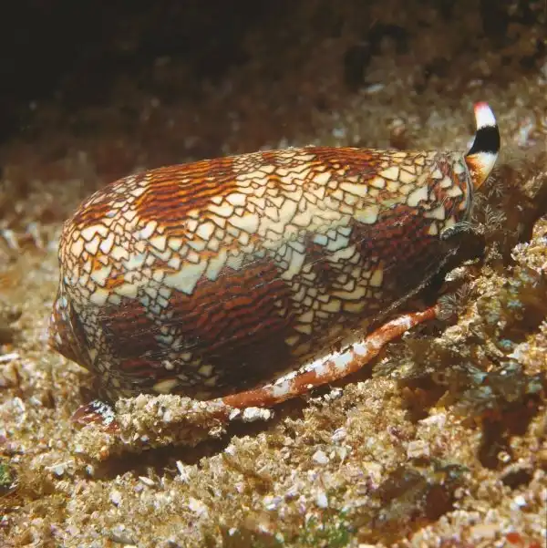 Раковина конуса Conus geographus, который использует инсулин для охоты на рыб