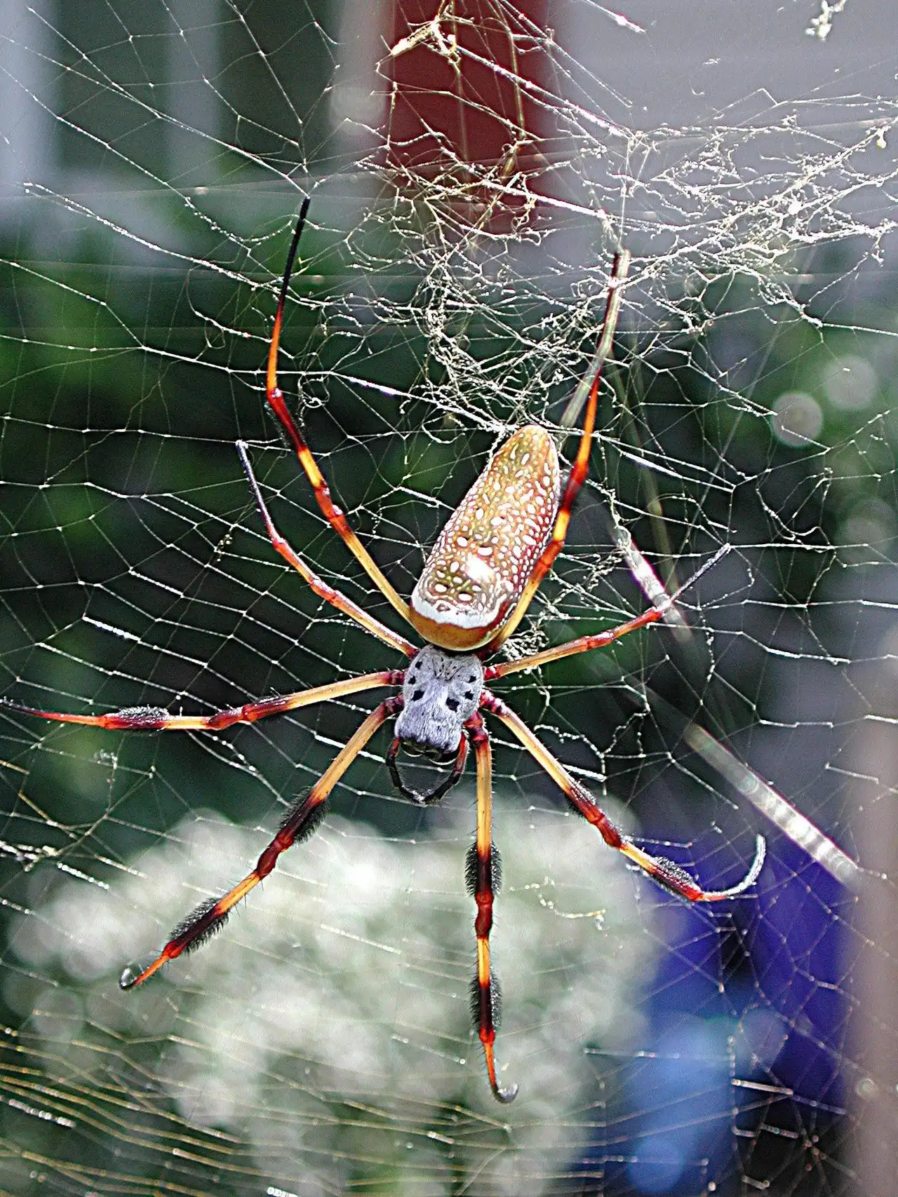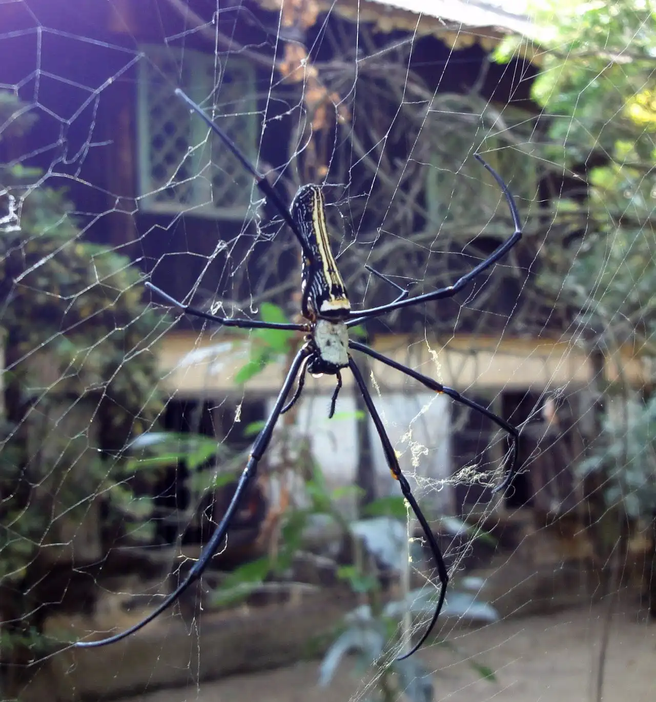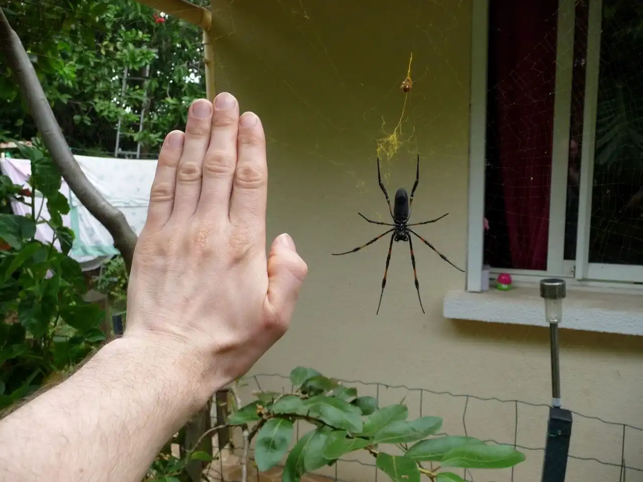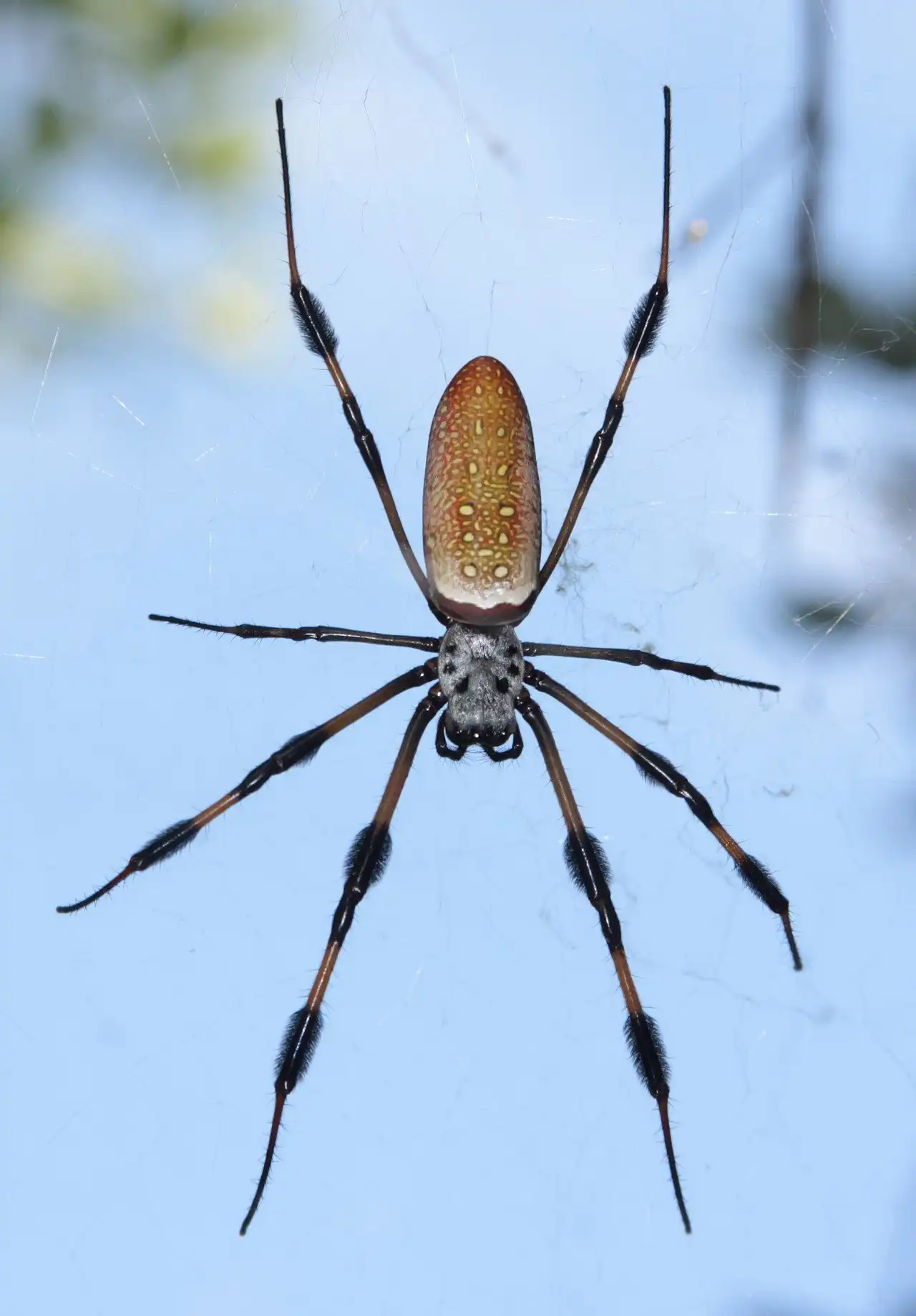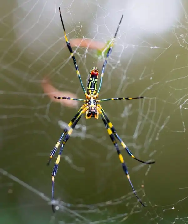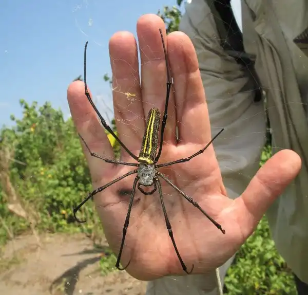 Самки достигают 12 см в размахе ног, при длине тела 4 см. При этом паутина, которую они плетут, может достигать более одного метра в диаметре! Самцы, как это часто бывает в мире пауков, намного меньше самок – длина их тела составляет около 1 см, а размах ног составляет всего 2,5 см.