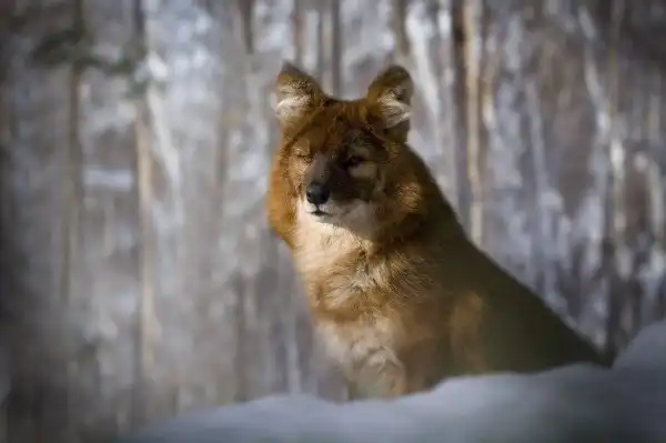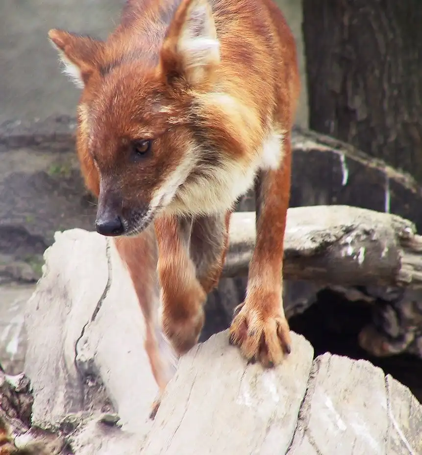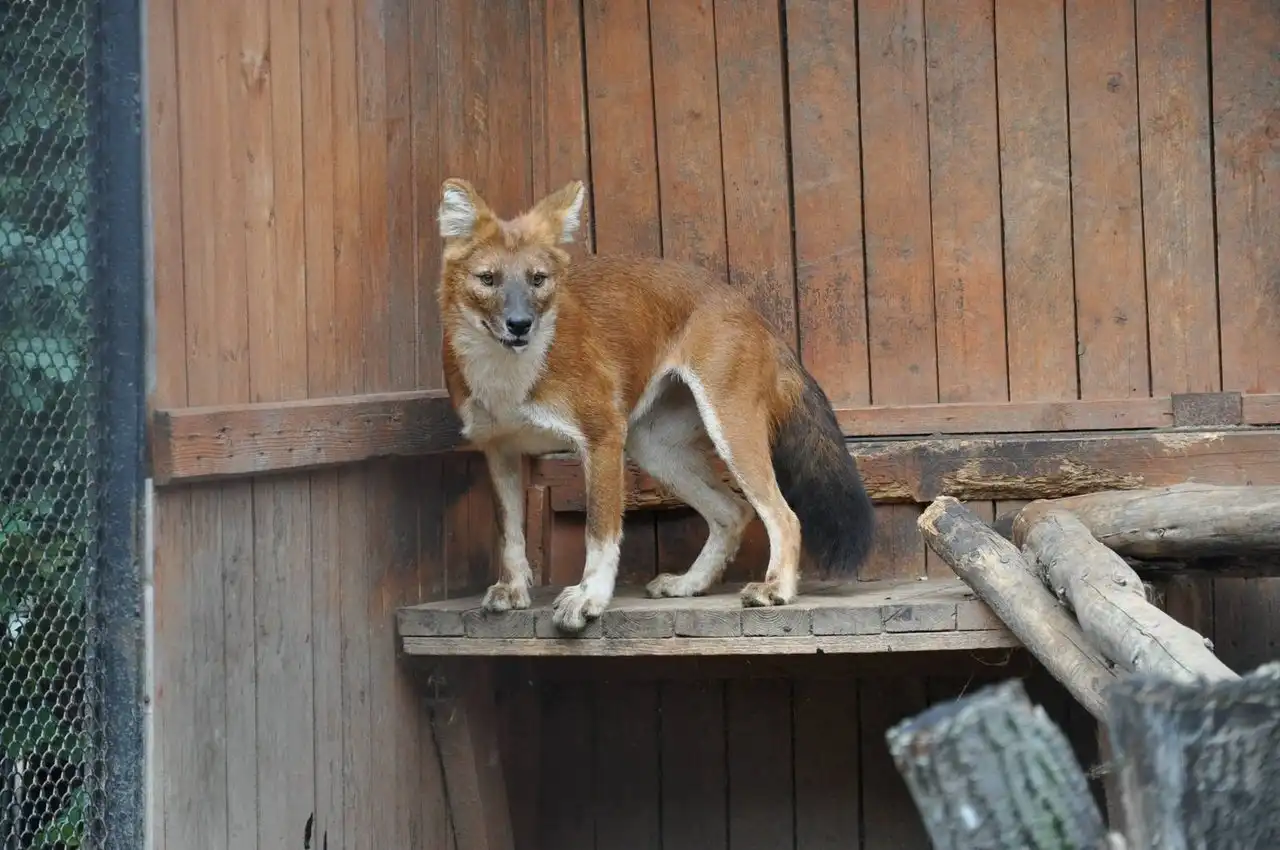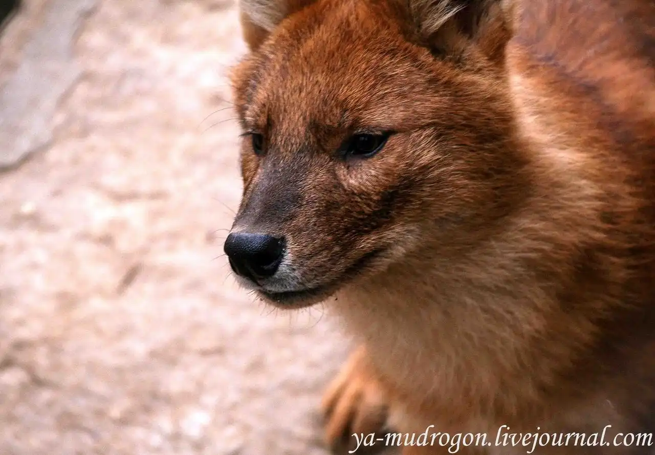 Знаете, что это за зверь ? Это Красный волк (Cuon [Canis] alpinus) Dhole (eng.) , красный волк, дикая индийская собака. В Сибири местные жители называют его «улан шоно» (красный волк) и «чикалка».