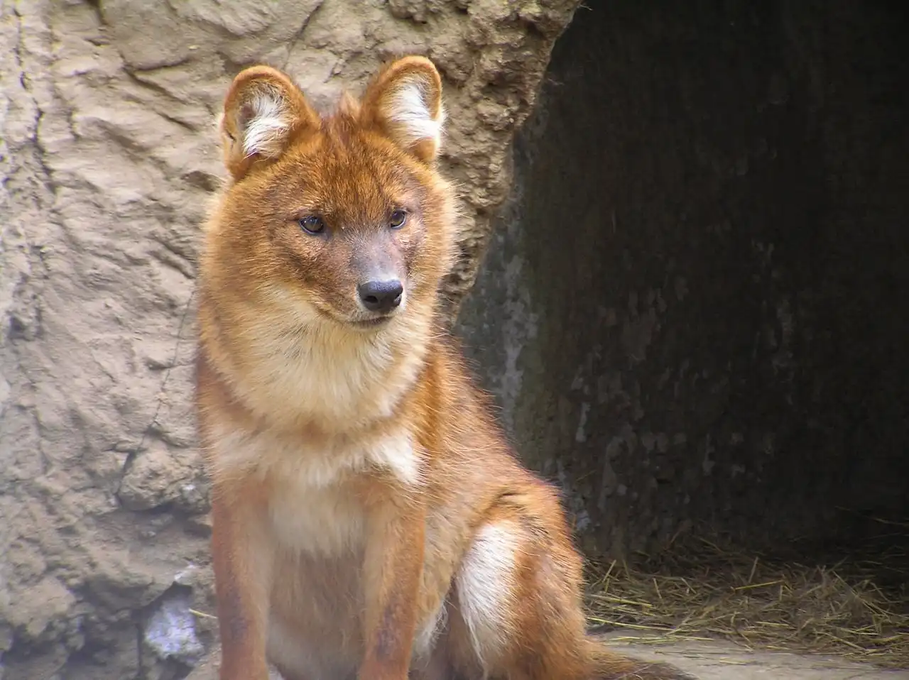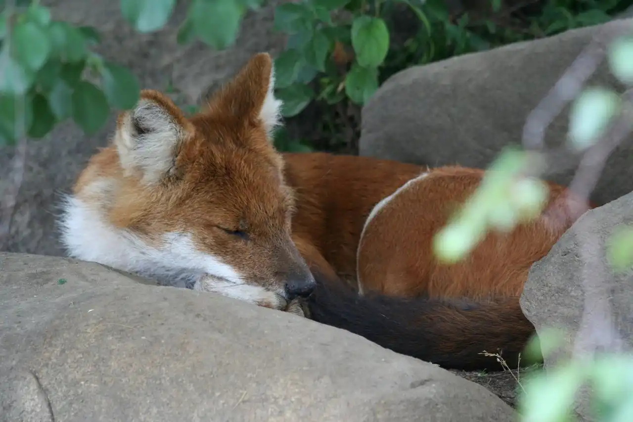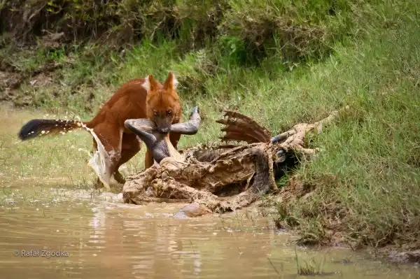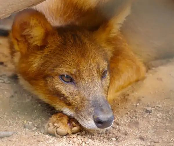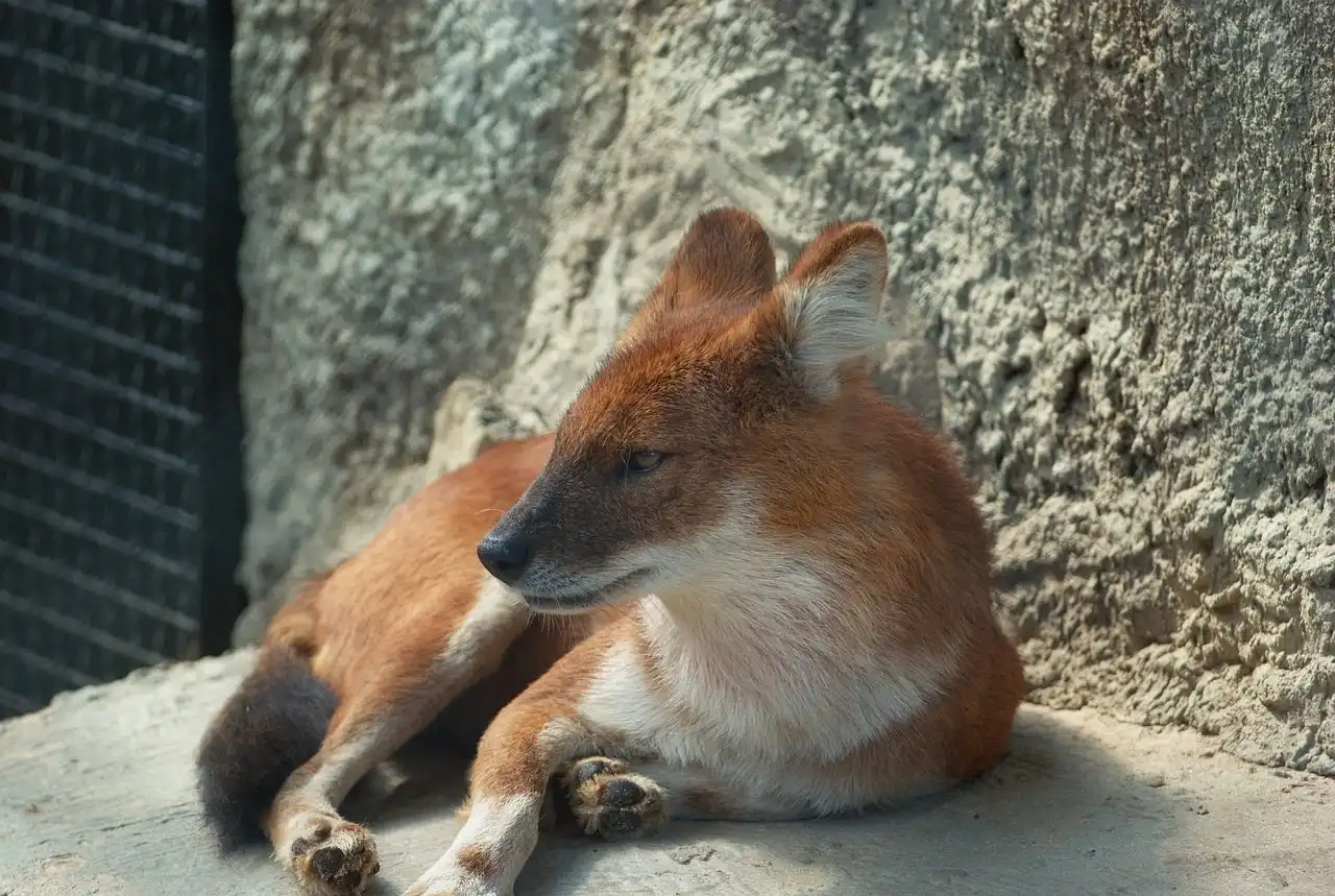 Знаете, что это за зверь ? Это Красный волк (Cuon [Canis] alpinus) Dhole (eng.) , красный волк, дикая индийская собака. В Сибири местные жители называют его «улан шоно» (красный волк) и «чикалка».