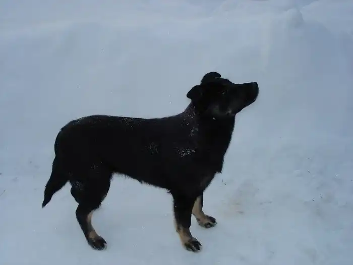 Ищет хозяев собака, девочка, около 5 мес., откормленная, очень добродушная, доверчивая к людям, ее знают и любят дети, с раннего возраста привыкла играть с детьми во дворе. Но на своей территории на чужих может гавкать. Стерилизована.