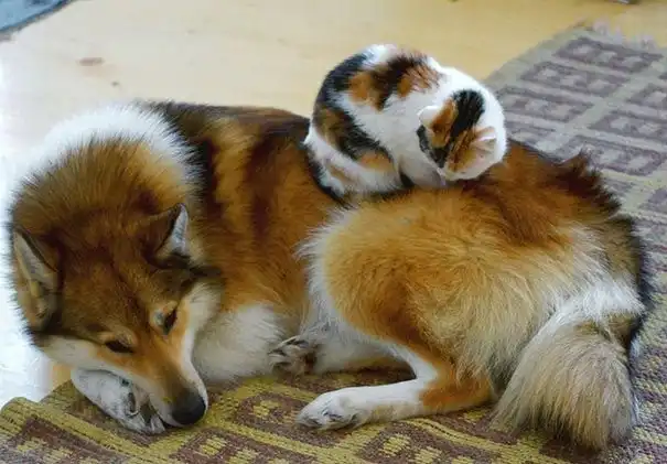 Кто не любит поспать на мягкой, удобной, а ещё и пушистой подушке? Кажется, ответ очевиден. Кошек этот вопрос, между прочим, тоже касался и они, будучи смышлёными и очень хитрыми существами прознали, что лучшей подушкой может быть большая, тёплая и мягкая… собака.