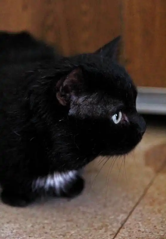 Отелло - крупный кот черного окраса с небольшой белой звездочкой на шее и красивыми зелеными глазами. Возможно помесь с британцами. Возраст примерно 2 года. Найден неожиданно людьми в приобретенной ими квартире под ванной. Самостоятельное и самодостаточное животное, в характере тоже есть британские нотки. Не переносит других котов, отдается единственным любимцем в дом. С людьми адекватен, но ненавязчив. Очень аккуратный, отлично пользуется лотком, питается готовыми кормами. Кастрирован.