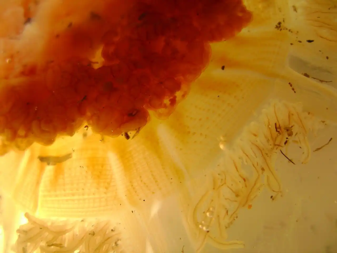 Так что же действительно на фото ? Вы может быть удивитесь, но на фото настоящая арктическая цианея. И она действительно самая большая медуза в мире. Правда диаметр купола у нее достигает максимум 2 метров и выглядит это примерно вот так: