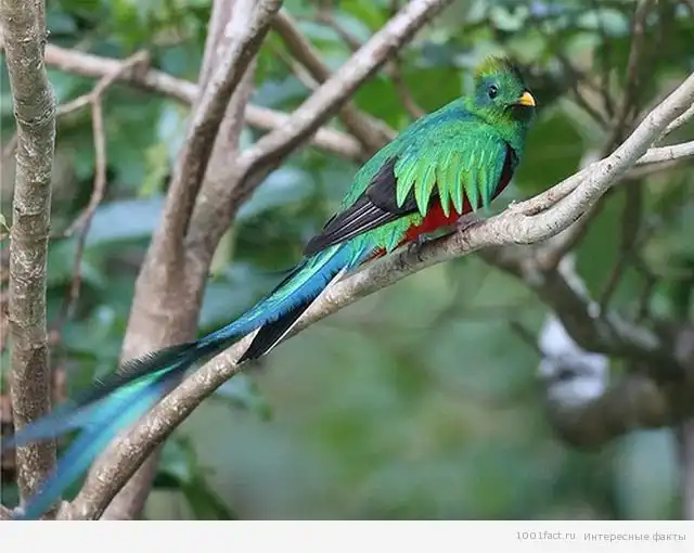 Есть у квезалей и необычные повадки. Например, с ветки на ветку они прыгают, но, чаще всего, назад.