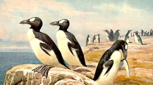 Бескрылые гагарки совсем не умели летать, достигали в высоту 90 см и были полностью уничтожены в конце 19 века. Последнюю на британских островах бескрылую гагарку убили трое рыбаков, потому что посчитали ее колдуньей-оборотнем.