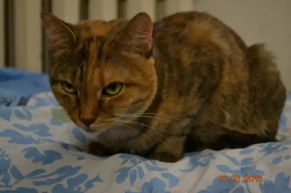 Кошка полосатая зовут Барби, она ласковая и спокойная дама, возраст около 3 лет, кушает сухой корм, ходит в лоток, стерилизована.