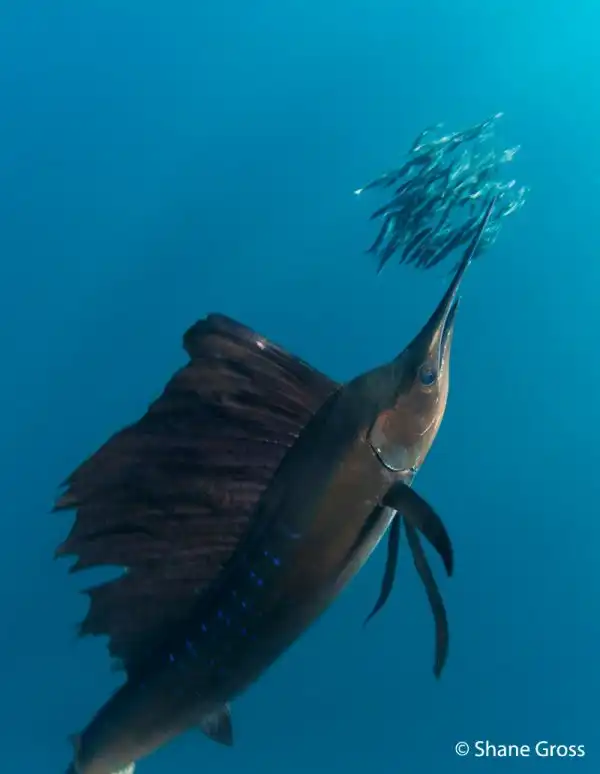 При быстром плавании, парус убирается в специальную выемку на спине рыбы. При резких поворотах он расправляется помогая рыбе двигаться в нужном направлении. Также у этой удивительной рыбы длинная верхняя челюсть, напоминающая пику. Этот вырост помогает рыбе в охоте и в создании турбулентности вокруг себя.