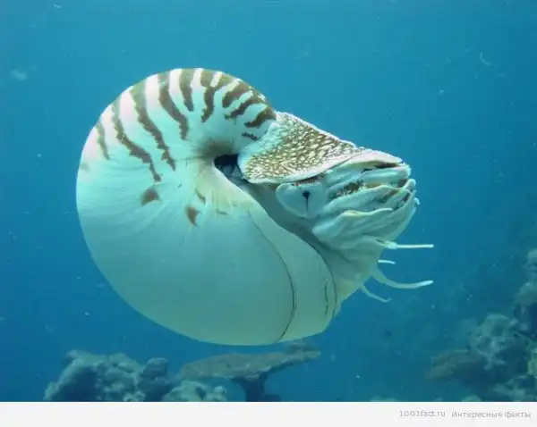 У наутилусов есть наружная раковина, напоминающая раковину улитки. А само строение раковины очень занятное – она разделена на несколько сегментов. Сам моллюск располагается в одном сегменте. В остальные он по желанию закачивает воду или газ, чтобы опуститься на дно или подняться на поверхность.