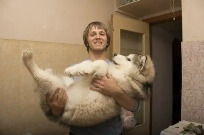 Маламут является довольно крупной породой собак, которая в течение небольшого времени может превратиться из маленького милого щенка в огромного мохнатого пса. Например, вот этот «малыш» вырос до таких размеров всего лишь за год.