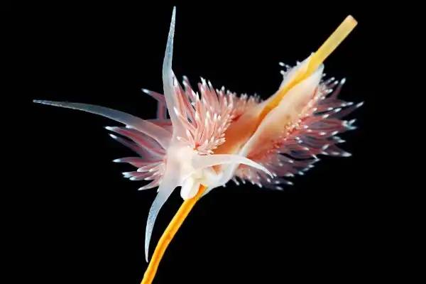 Корифелла полярис — чрезвычайно редкий моллюск. Длинные «рога» на голове — это видоизмененные щупальца, органы химического чувства и вообще главная сенсорная система любого голожаберника.
