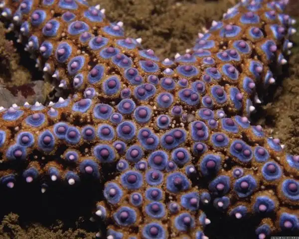 Разнообразие окраски морских звезд зависит от пигментных включений, находящихся в клеткох кожного эпителия.