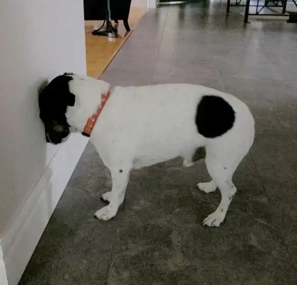Подпирание головой стены, также может говорить о нарушении обмена веществ, воспалении или повреждении головного и/или спинного мозга