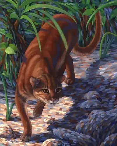 Сегодня у нас для изучения Кошка залива или Калимантанская кошка – таинственное дикое животное, встречающееся только на острове Борнео. Тропическим лесам, где обитают эти кошки, угрожает вырубка, поэтому звери попали в ряд исчезающих видов по классификации Международного союза охраны природы. Это одна из всего нескольких существующих в мире фотографий кошки залива Борнео.
